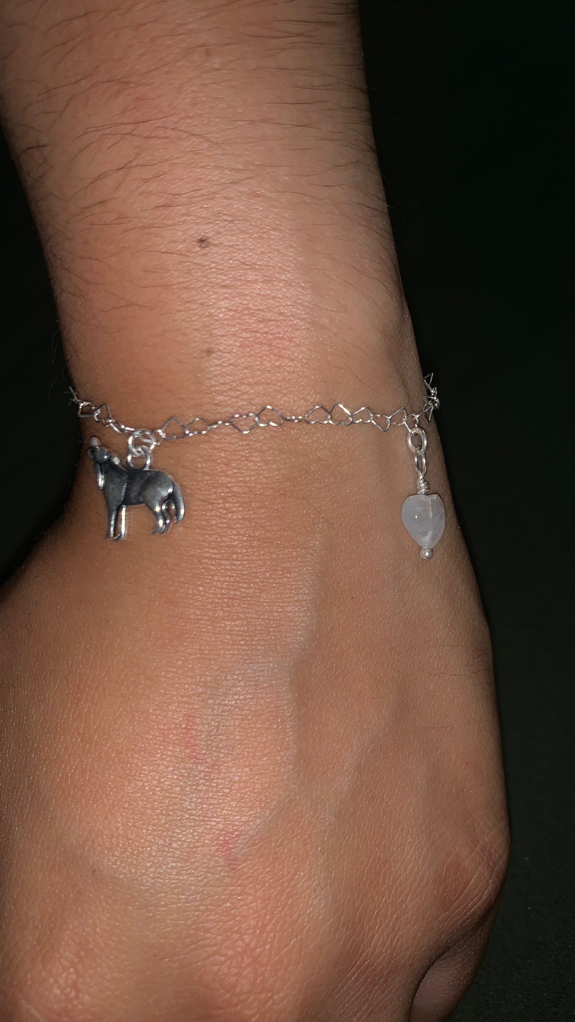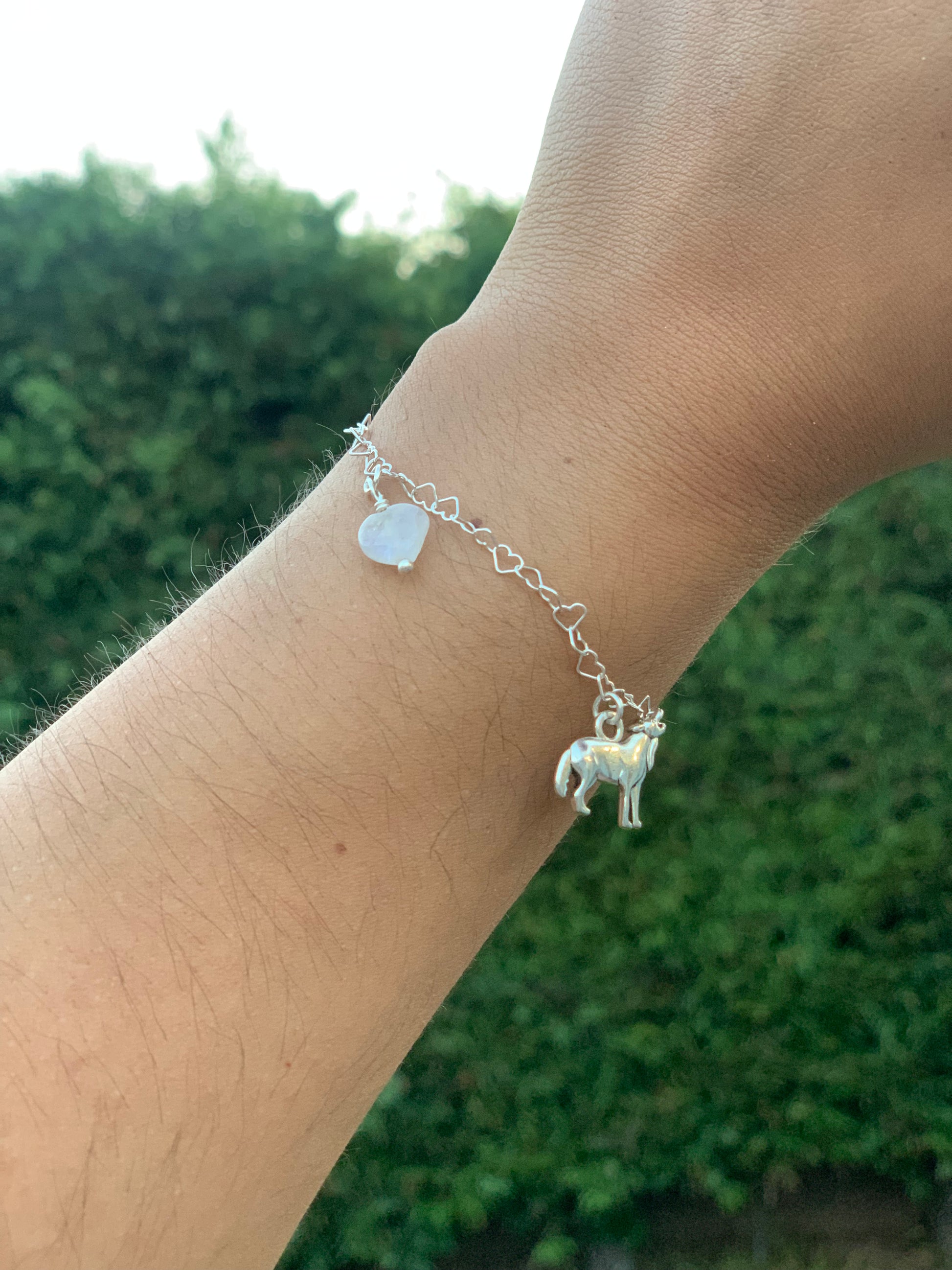 Each bracelet is handcrafted, ensuring every moonstone heart is unique.